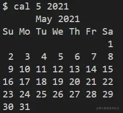 Linux中有个cal命令,它可以显示指定年、月的日历,如果不指定年、月,默认为当前时间对应的年月。如果使用的是Windows,推荐安装msys2,这个软件包含了绝大多数的Linux常用命令。