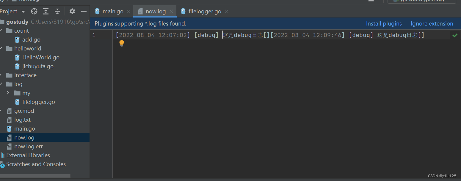 补充:Go内置的log库功能有限,例如无法满足记录不同级别日志的情况,需要选择使用第三方的日志库,如logrus、zap等。