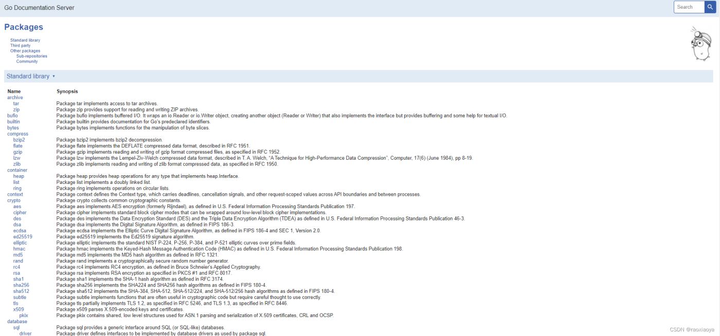 访问指定的包http://localhost:6060/pkg/fmt/http://localhost:6060/pkg/archive/tar/