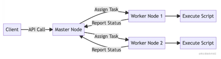 - 分派任务(Assign Task):通过 API 向主节点发起请求,主节点再向工作节点分派任务