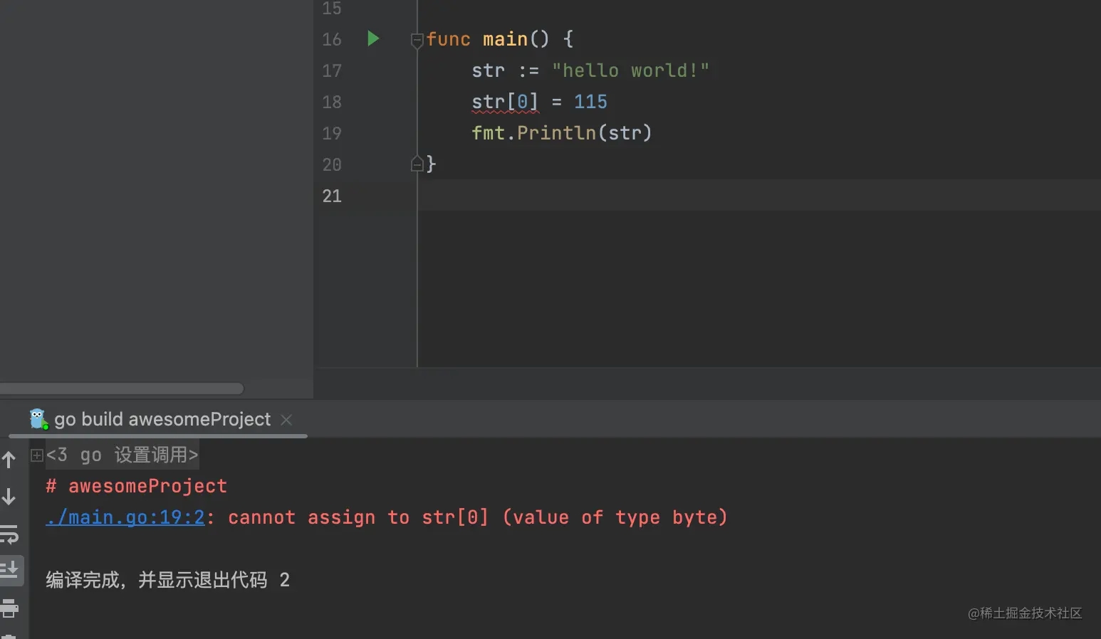 这时候指定有小伙伴就得问了,既然是byte切片,那我为什么不能修改字符串中某一个元素呢?就像下面这种情况