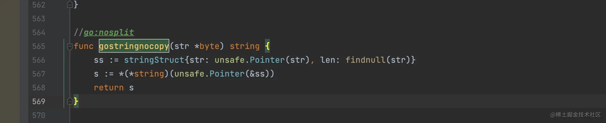 提到stringStruct就要提到底层的另一个方法gostringnocopy,如下