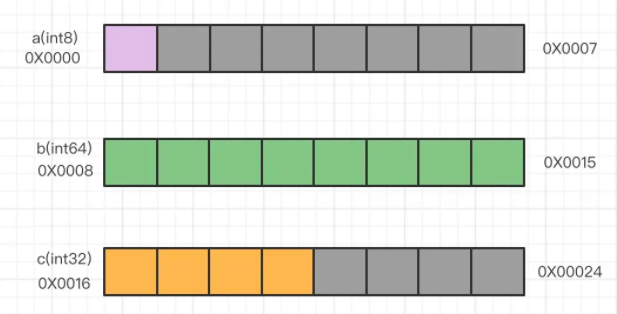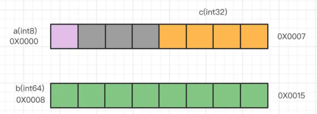 所以,为了能让CPU减少一次获取的时间,Go编译器会帮你把struct结构体做数据的对齐,以便CPU可以一次将该数据从内存中读取出来。重新排列后内存布局结构示意图如下: