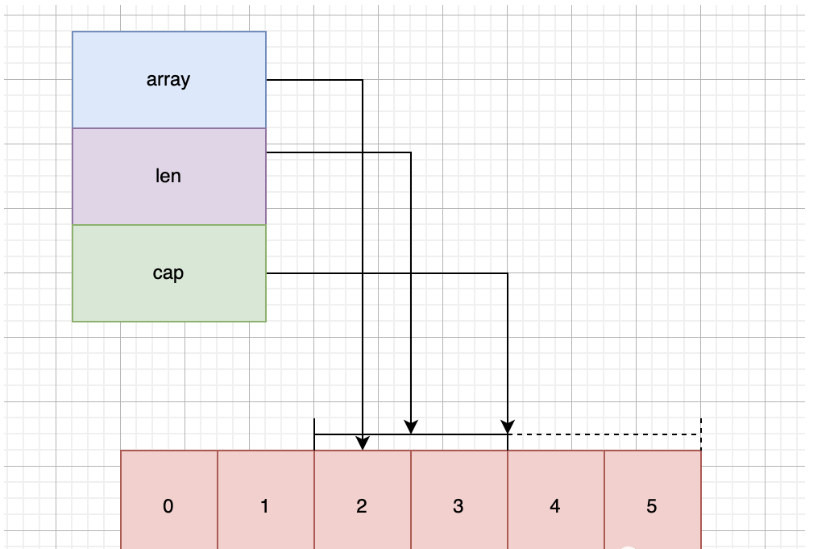 因为切片发生了扩容,函数外的切片指向了一个新的底层数组,所以函数内外不会相互影响,因此可以得出一个结论,当参数直接传递切片时,如果指向底层数组的指针被覆盖或者修改(重分配、append触发扩容),此时函数内部对数据的修改将不再影响到外部的切片,代表长度的len和容量cap也均不会被修改