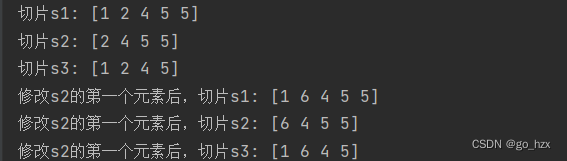 fmt.Println("修改s2的第一个元素后,切片s2:",s2)