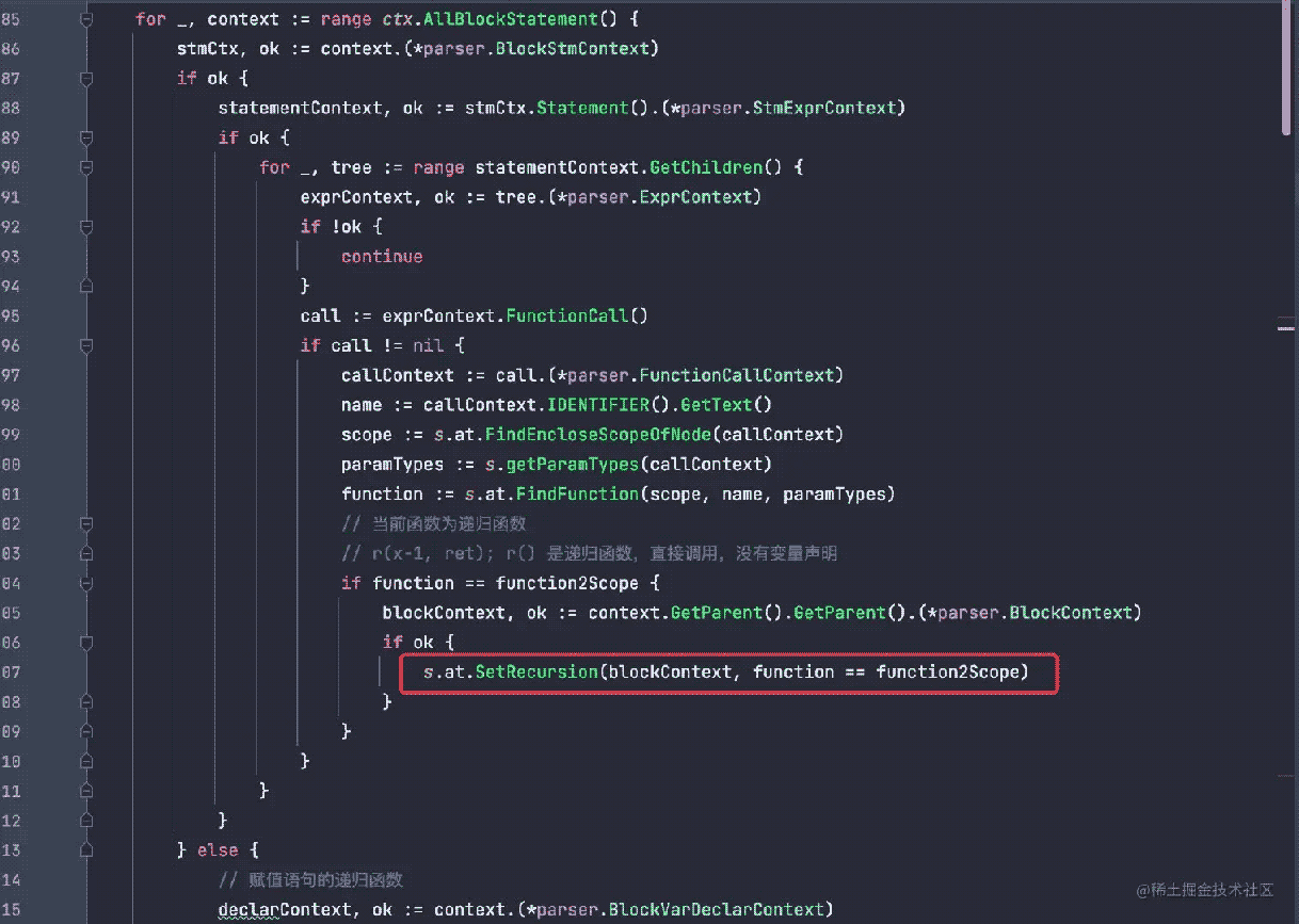 最后一个才是本次讨论的重点,也就是递归函数的支持。