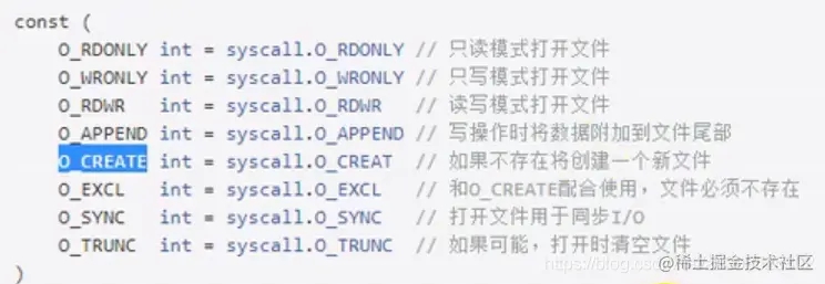 文件打开函数 func OpenFile(name string,flag int,perm FileMode)(file *File,err error)