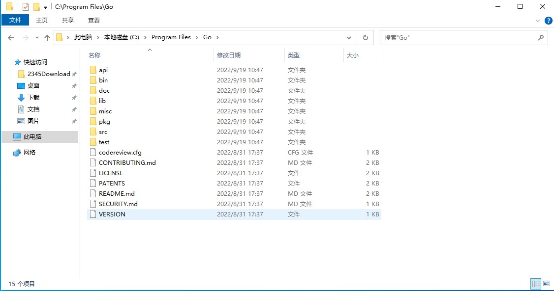 我们装的目录在 C:\Program Files\Go ,我们去看看,安装完成以后,目录有哪些。