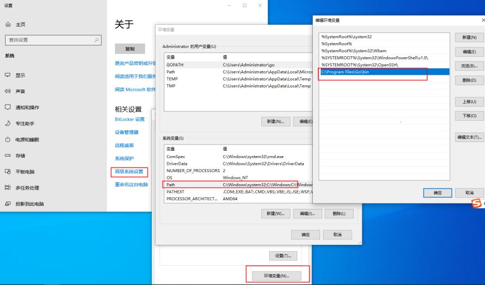 完成安装后,配置下go的环境。
