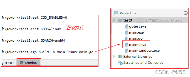 在项目main.go同级目录下,逐条执行以下命令