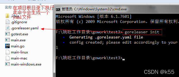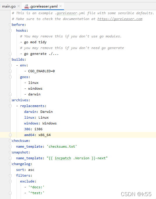 在项目根目录下执行goreleaser init命令,会生成一个.goreleaser.yaml的文件