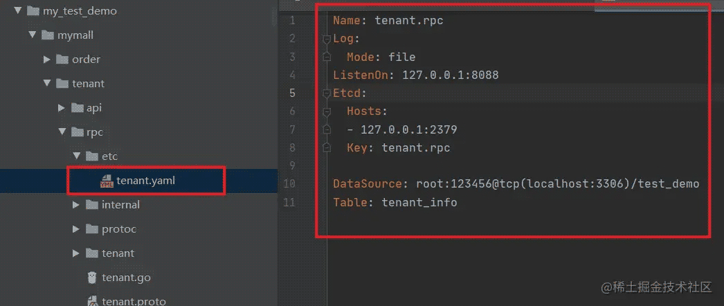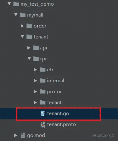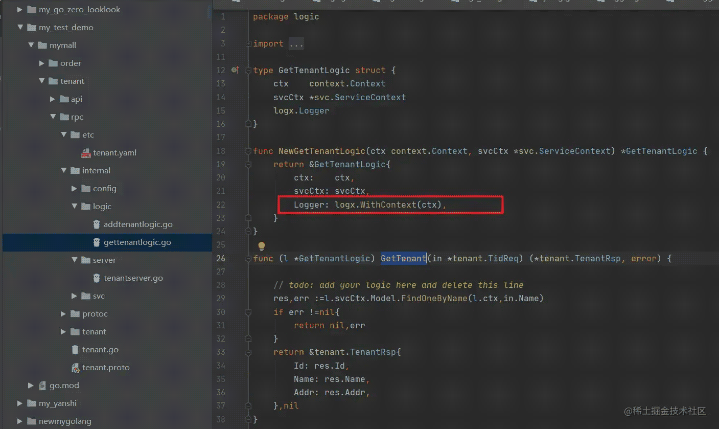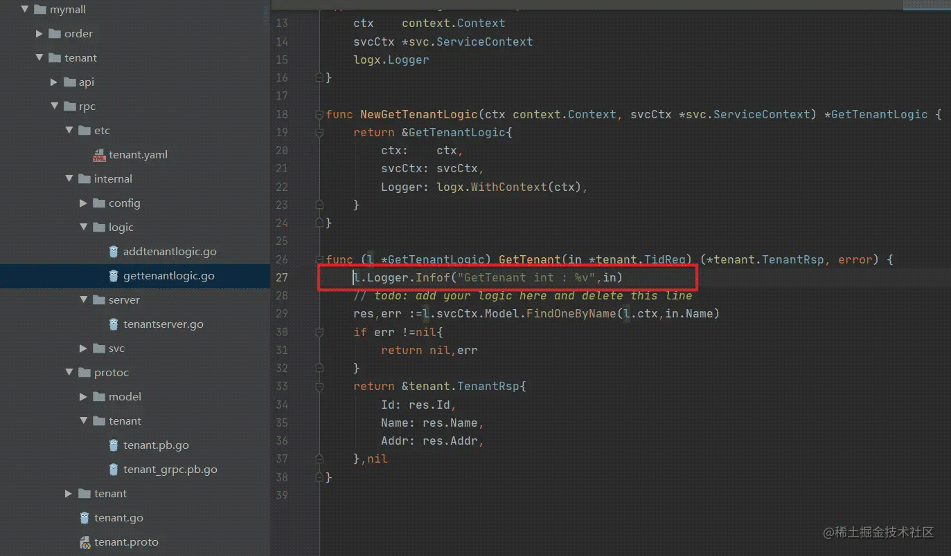 实际上我们可以直接看到,我们之前实现的 GetTenant rpc 方法
