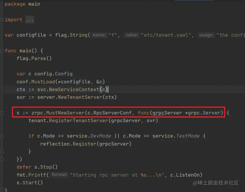 可以看到在 tenant.go 的文件中,做的是服务的启动