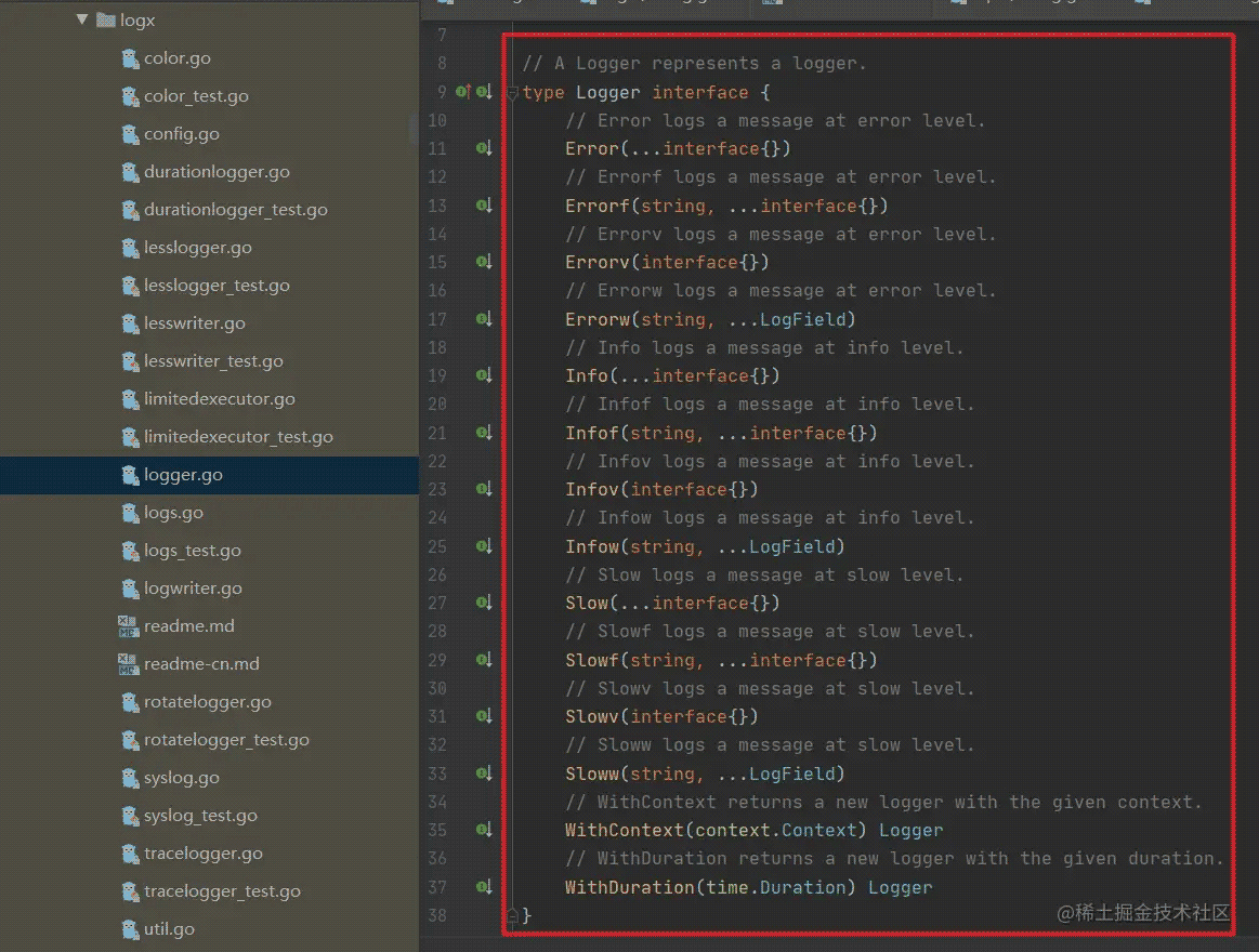 实际上我们可以看到在 logx 源码中,其实有很多文件都已经根据自己的使用情况去实现了上述 Logger 接口