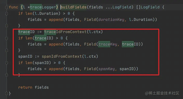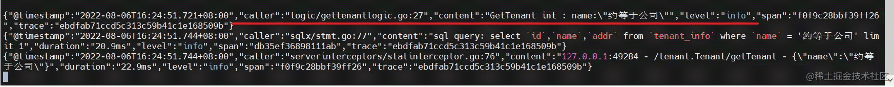 我们可以看到当调用了NewGetTenantLogic 方法之后,实际上是会调用 logx.WithContext(ctx) 初始化一个 traceLogger 的句柄