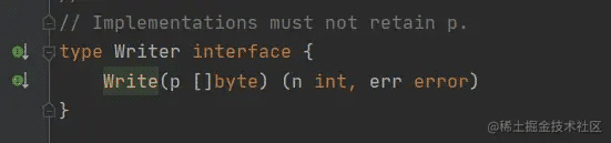 咱们只需要定义对象,去实现 Writer 接口 中的 Write(p []byte) (n int, err error) 方法就可以了