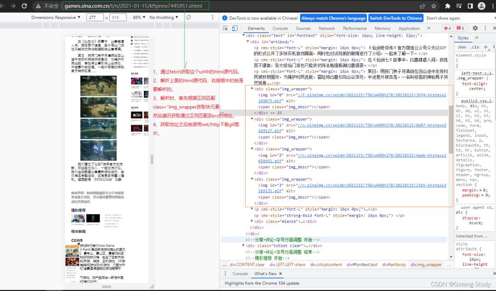 img_div := re_Img_div.FindAllString(html, -1) // 得到<div><img alt="Go爬虫(http、goquery和colly)详解" ></div>
