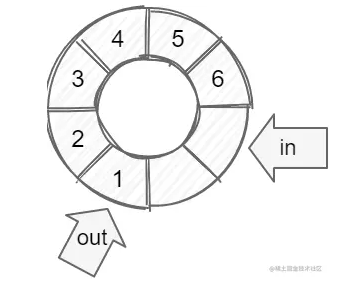 <p>数据结构和上面介绍的一样,in、out标识当前读写的位置;mask是size-1,用于取索引,比<code>%size</code>更加高效;</p>