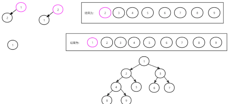 假如,{1, 7, 9, 2, 4, 6, 3, 5, 8} 建堆,然后进行堆排序输出。