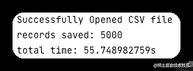 正如我们所看到的,保存 CSV 中所有记录需要 55 秒,这是很长的时间,可能会导致很多性能问题。用户如果想要上传 CSV 文件,那体验感一定很差。