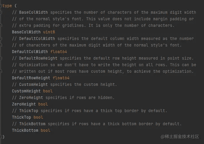- DefaultRowHeight 指定以磅值度量的默认行高,我们不必在所有行上写入高度。如果大多数行具有自定义高度,则可以将其写出,以实现优化。