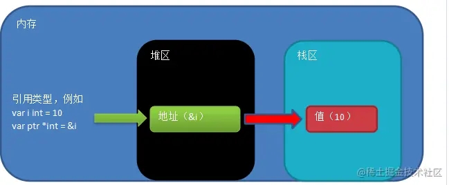 引用类型的内存在堆中分配,当没有任何变量引用堆中的内存地址时,该内存地址对应的数据存储空间就变成了垃圾,就会被GO语言的GC回收。