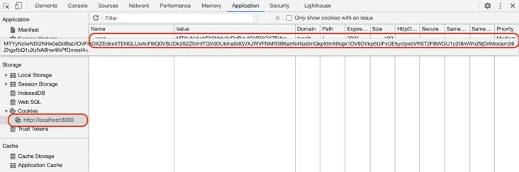 首先访问localhost:8080/set,通过浏览器的开发者工具Application页签查看 cookie: