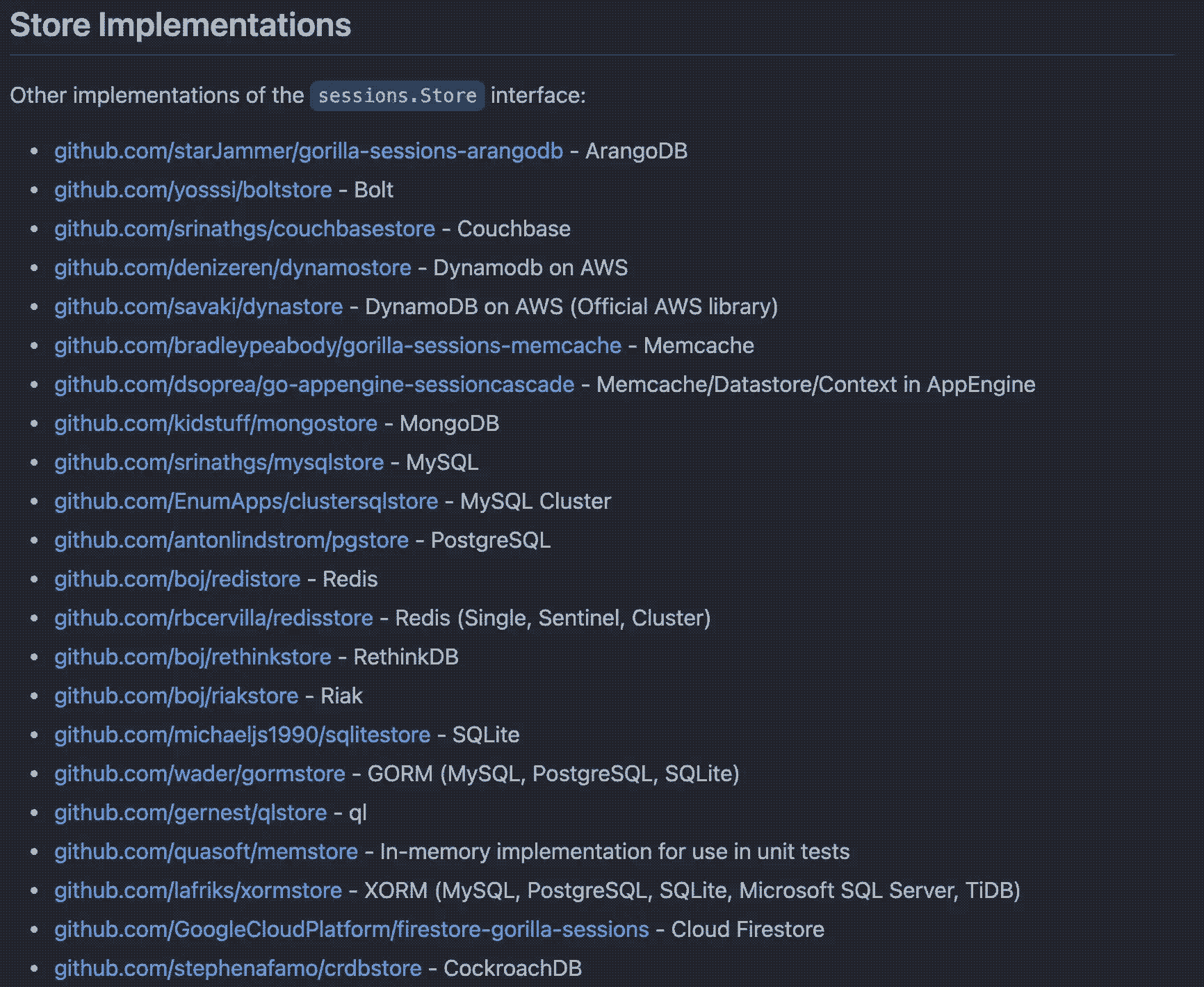 gorilla/sessions GitHub:github.com/gorilla/sessions