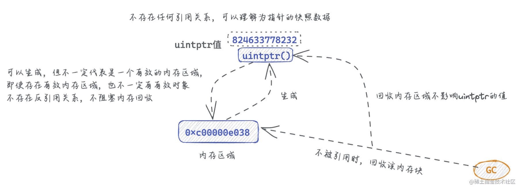 uintptr将生成指向的值的内存地址,该地址为整数。 - 这种