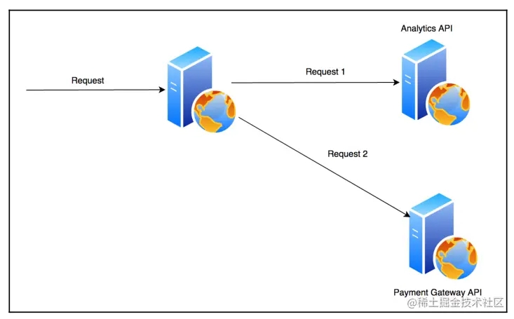 我们举一个现实世界的例子,一个电子商务网站将自己与一个第三方支付网关整合在一起。 这里,网站使用支付网关的 API 来弹出支付屏幕并输入安全证书。同时,网站可能会调用另一个称为分析的 API 来记录支付的尝试。这种将一个请求分叉成多个请求的过程被称为 fan-out 扇出。在现实世界中,一个客户请求可能涉及许多扇出服务。