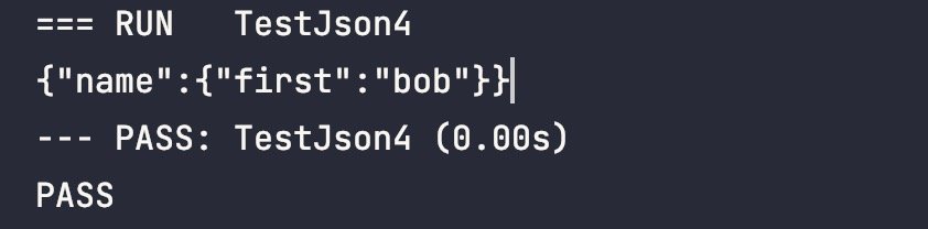 //assert.Equal(t, get.String(),`{"name":{"first":"bob"}}`)