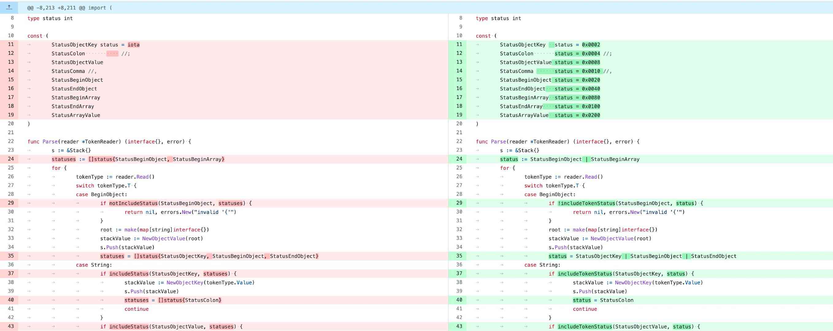 # 优化前 BenchmarkDecode-12 90013 66905 ns/op 42512 B/op 1446 allocs/op # 优化后 BenchmarkDecode-12 104746 59766 ns/op 37749 B/op 1141 allocs/op