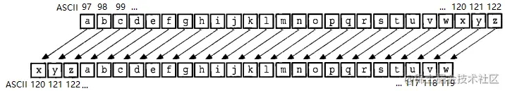 } else { //7. 如果明文字符超出范围,则加上 26 减去位移后的步长