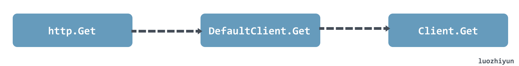 HTTP 的 Get 方法会调用到 DefaultClient 的 Get 方法,DefaultClient 是 Client 的一个空实例,所以最后会调用到 Client 的 Get 方法: