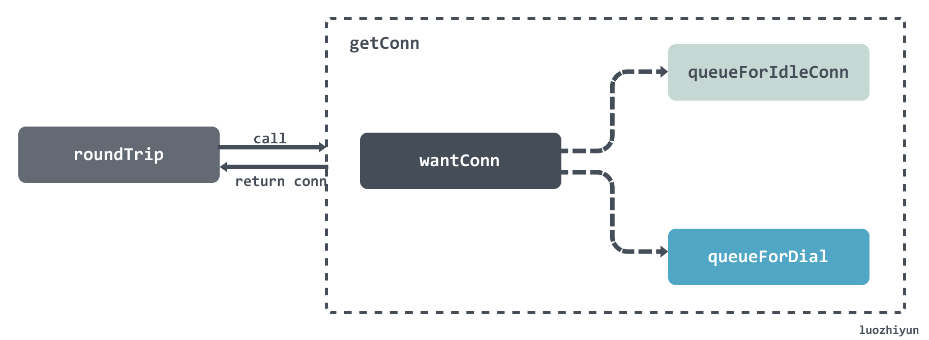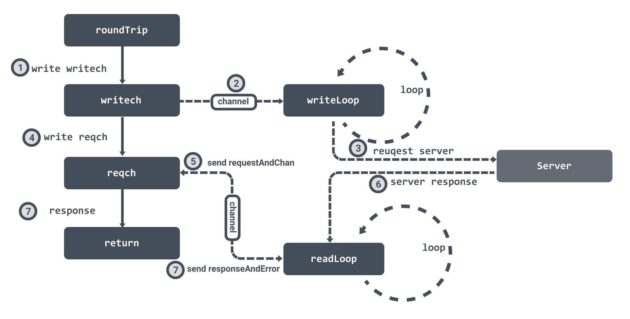 RoundTrip 会调用到 roundTrip 方法中:
