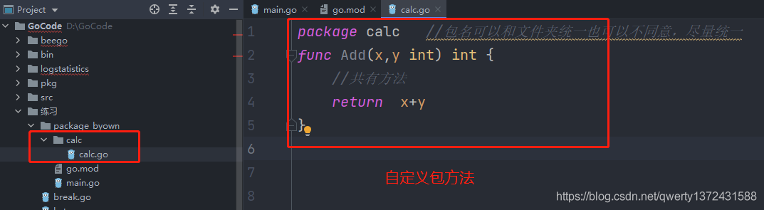 2.1 自定义包 (可以包含多个go文件)