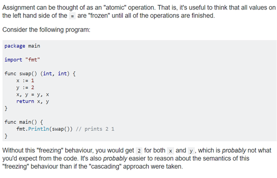 注意:Go语言的新特性 “Simultaneous Assignment” (平行赋值、多重赋值 ......)