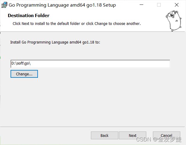 建议大家不要安装在默认路径下;在这里笔者是安装在D:/soft/go