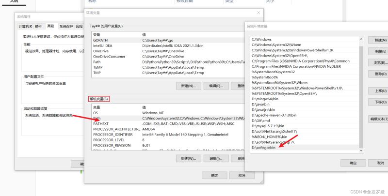 这一步就是将go安装目录下面的bin放进path,我在安装的时候发现已经有了(所以你们需要检查一下,没有就设置一下)PS:点击新建)