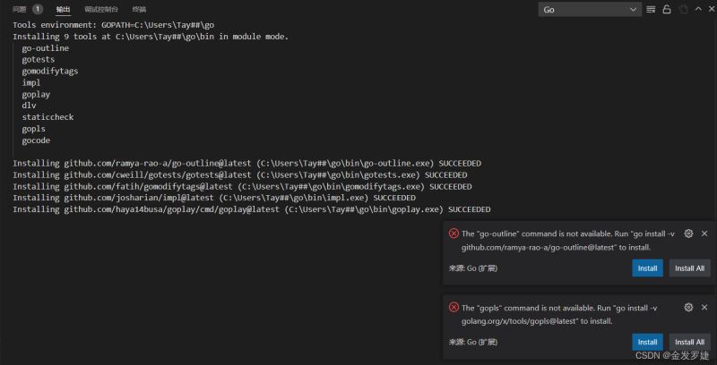 - go语言VScode see 'go help modules' (exit status 1)问题的解决过程
