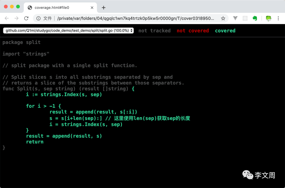 ❯ ls -l total 16 -rw-r--r-- 1 liwenzhou staff 408 4 29 15:50 split.go -rw-r--r-- 1 liwenzhou staff 466 4 29 16:04 split_test.go