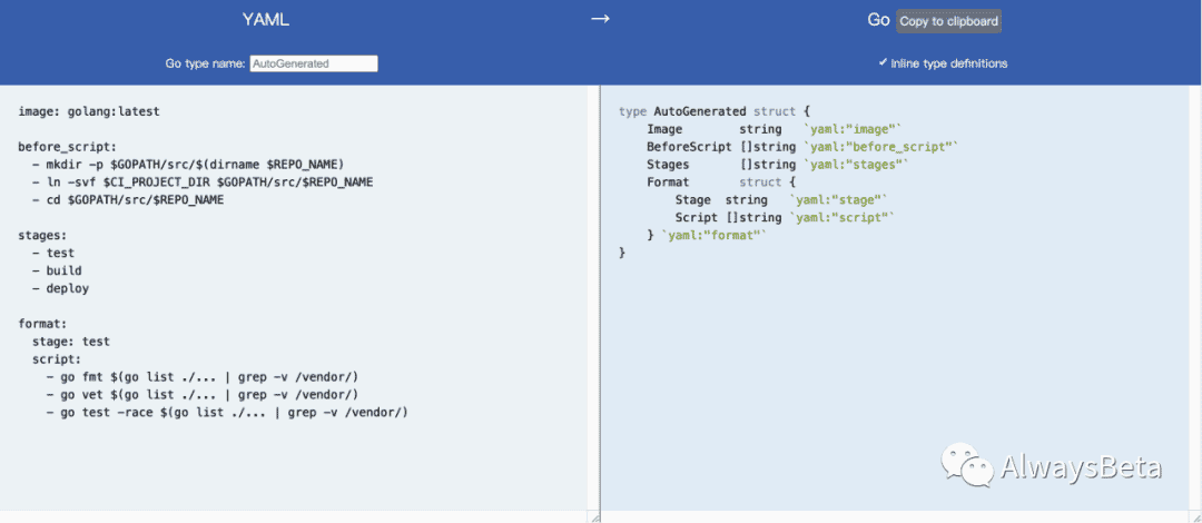 地址:https://zhwt.github.io/yaml-to-go/