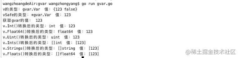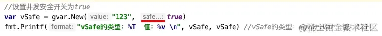 fmt.Printf("vSafe的类型:%T 值:%v \n", vSafe, vSafe) //vSafe的类型:*gvar.Var 值:123