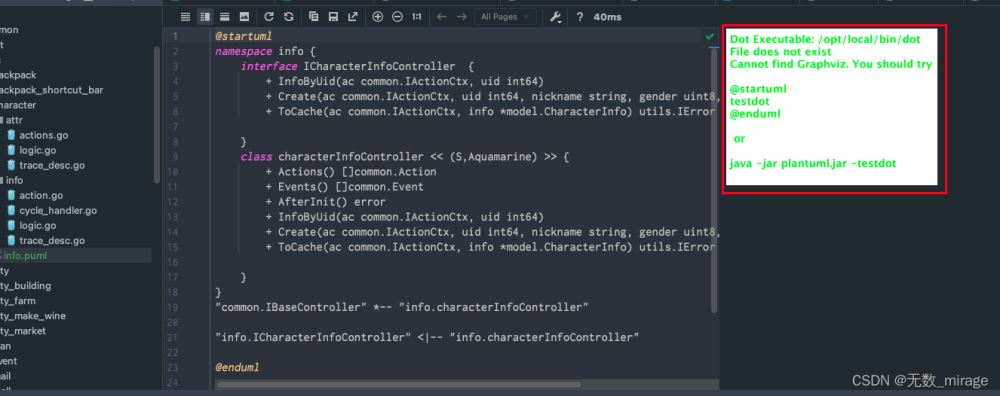 解决方案是 利用github上的 适用于 golang 项目的 PlantUML 类图生成器:jfeliu007/goplantuml 结合Goland的PlantUML插件