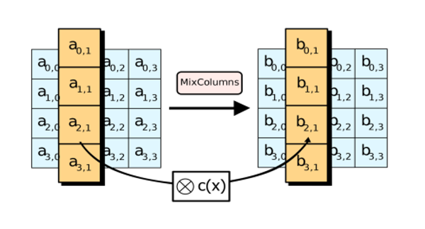 再对矩阵的每一列和修补矩阵fixed matrix的二维常量数组做矩阵相乘,得到对应的输出列。