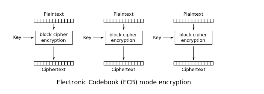 在上面加密过程中每一个明文块都是独立进行加密的,简单且高效,但是如果一个段数据存在相关的明文块,则加密后的密文也会相同,对安全性也有一定影响。