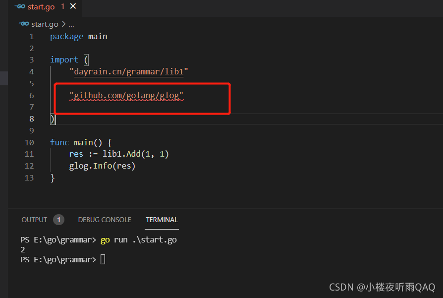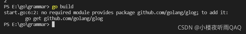 提醒我们要先go get github.com/golang/glog 获取模块