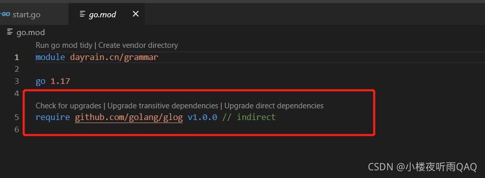 获取成功后,go.mod多了一行require。