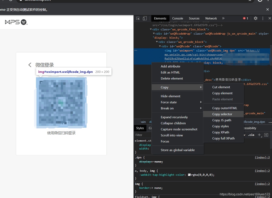 6.用同样的方式,获取二维码图片的选择器