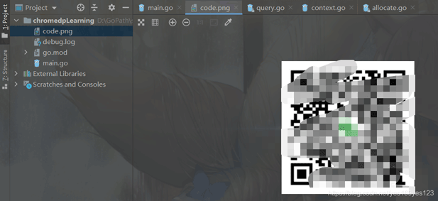 8.执行程序即可发现目录下已经存储了二维码图片文件,我们可以通过扫描此二维码进行登陆,与浏览器上扫描为同一种效果